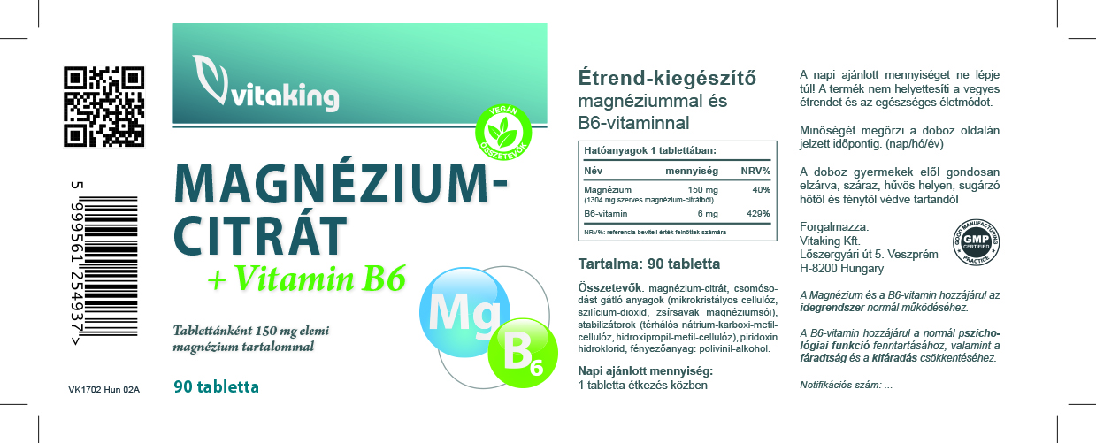 | Magnézium+B6-vitamin (90) | VK1702 | ![]() | Letöltés |