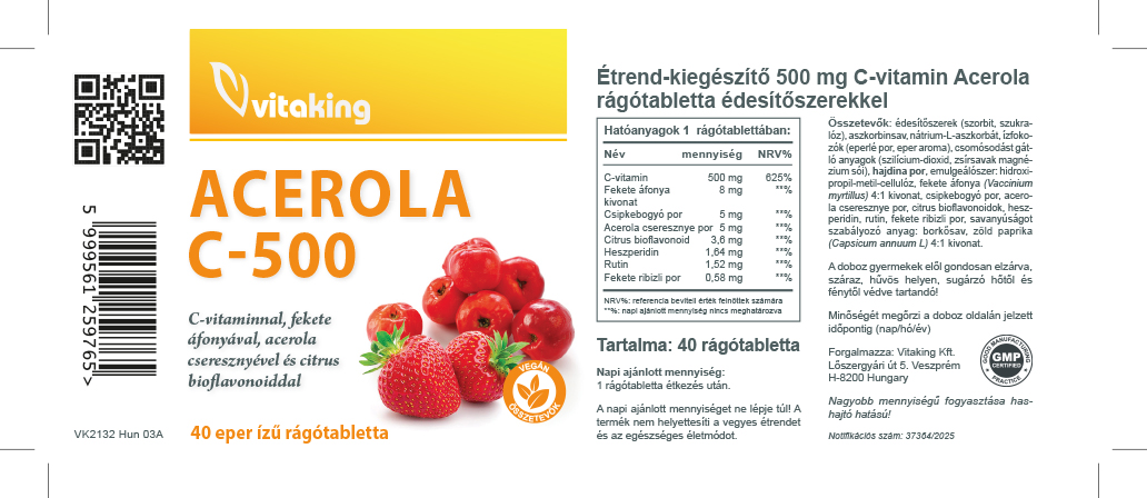 | Acerola C-500 eper (40) | VK2132 | ![]() | Letöltés |